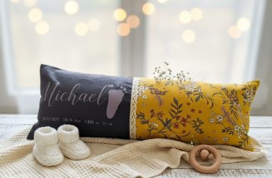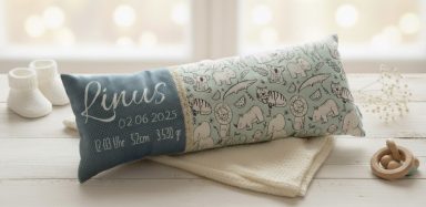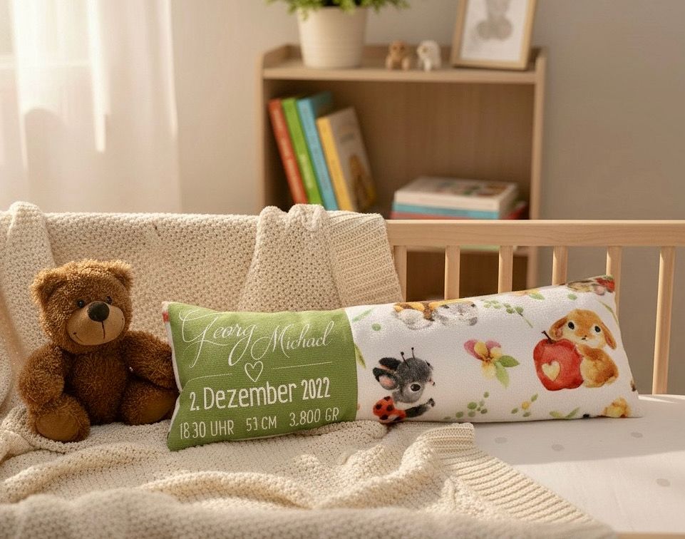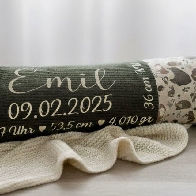 Geburtskissen nach Maß (Geburtsgewicht, Länge und Kopfumfang des Kindes werden im Kissen 1:1 dargestellt)