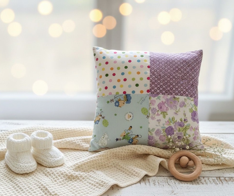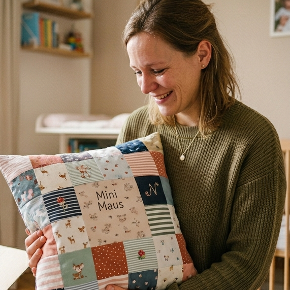 Aus den Materialien, die für dich eine besondere Bedeutung haben, fertige ich liebevoll handgenähte Kissen und kleine Textilstücke. Ob alte Lieblingsshirts, Kleidung Verstorbener oder Erinnerungsstücke aus der Babyzeit – jedes Kissen wird so zu einem einzigartigen Begleiter, der Nähe und schöne Erinnerungen spürbar macht.